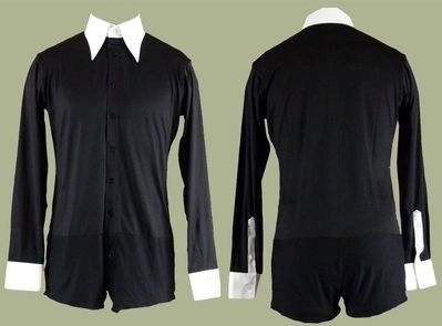 Mens Black shirt with shorts and a white collar and cuffs