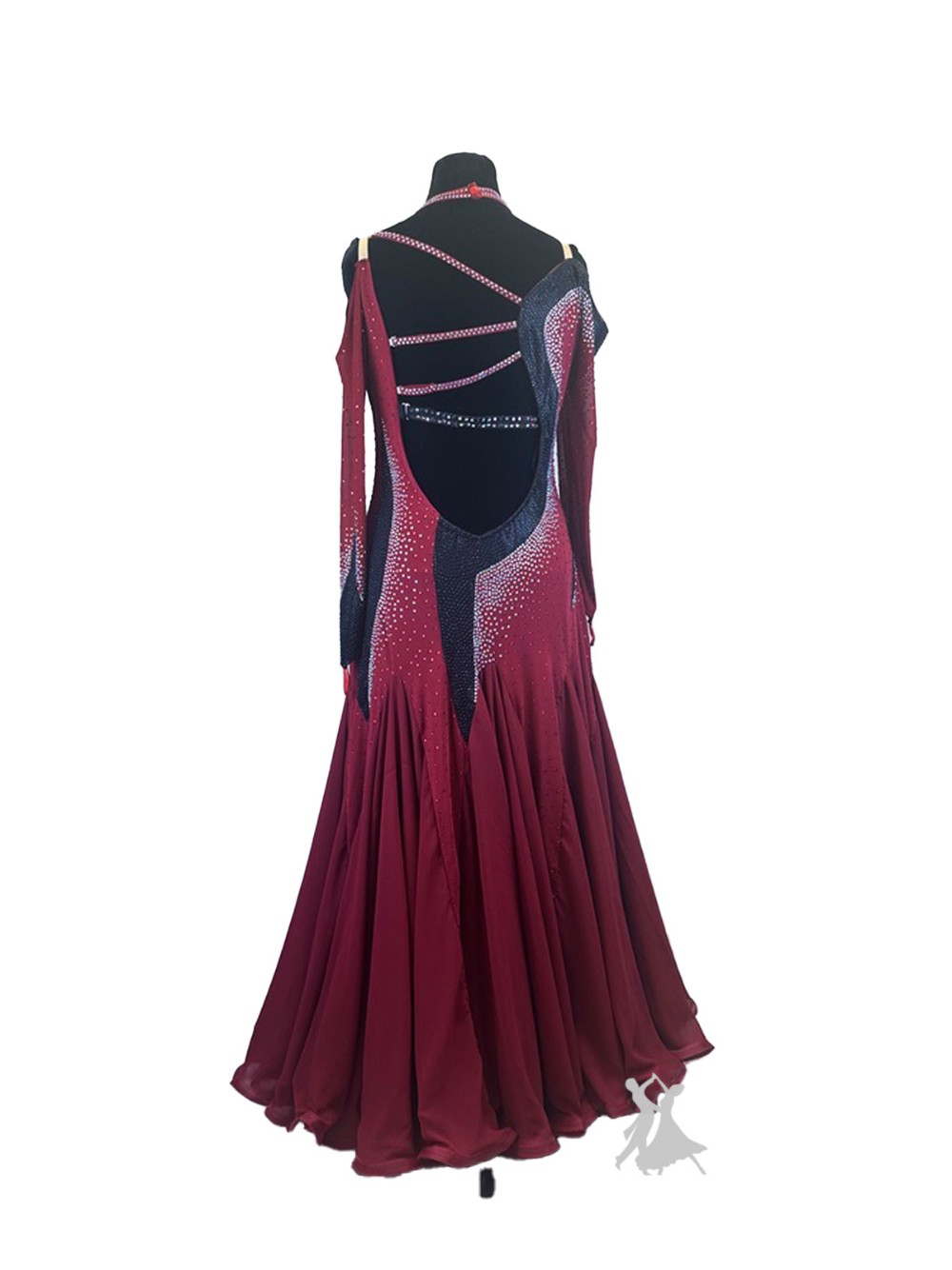 Brick Rid and black smooth dress witih ab and light siam stones that flatter a fuller figure!